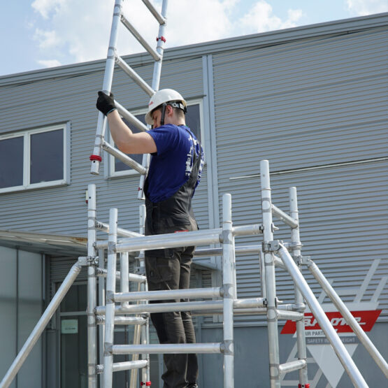 Wieża jezdna TOP SYSTEM SAFETY to bezpieczne, mobilne rusztowanie, idealne do różnorodnych prac wysokościowych. Jest zaprojektowana w taki sposób, aby zapewniać maksymalne bezpieczeństwo, stabilność i komfort użytkowania. Doskonale sprawdza się w pracach budowlanych, konserwacyjnych, malarskich, wykończeniowych oraz instalatorskich.