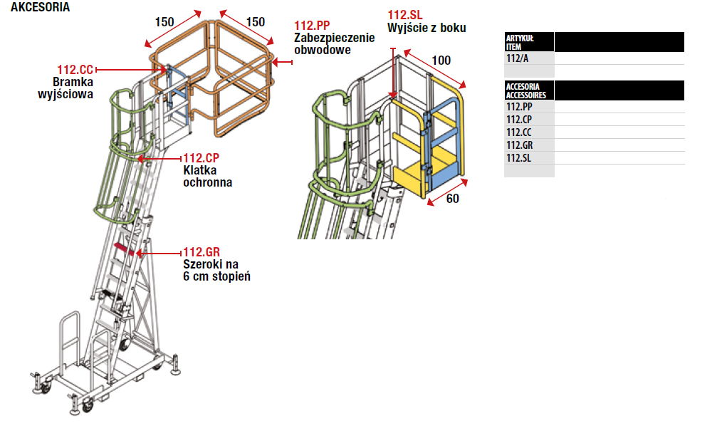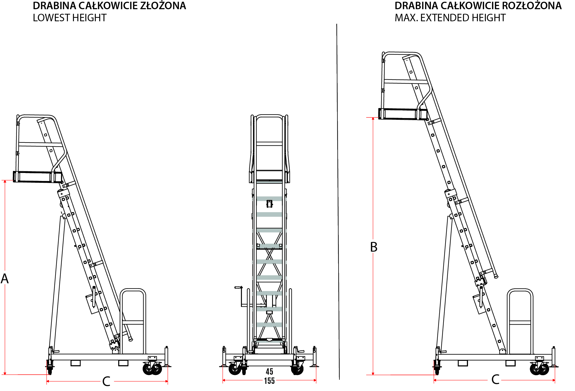 Zaprojektowany tak, aby zapewnić maksymalne bezpieczeństwo podczas konserwacji na wysokości samochodów dużych rozmiarów o różnych wysokościach (standardowo od 3,1 do 4,2 m). Przechodzi próbę przewracania na bok, spełniając normę EN 131-7.