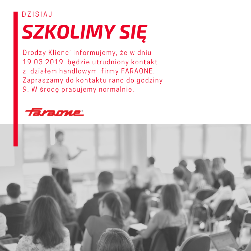Drodzy Klienci informujemy, że w dniu 19.03.2019 będzie utrudniony kontakt z działem handlowym firmy FARAONE. Zapraszamy do kontaktu rano do godziny 9. W środę pracujemy normalnie. Za utrudnienia przepraszamy. Czytaj dalej