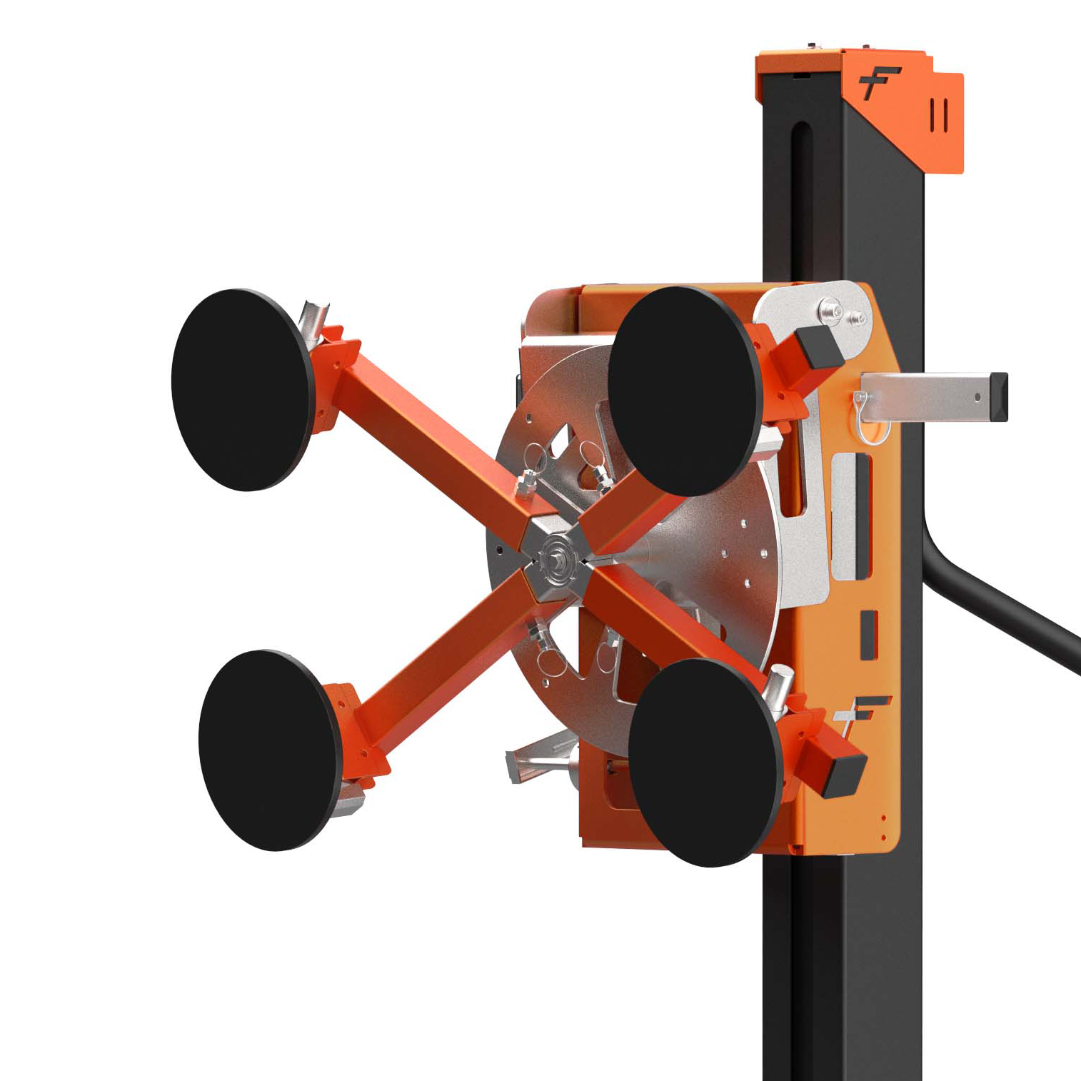 Regulowany zestaw przyssawek gwarantuje pewny chwyt i łatwe dopasowanie do rozmiaru przenoszonego materiału. Urządzenie minimalizuje ryzyko uszkodzeń oraz eliminuje konieczność ręcznego przenoszenia ciężkich i delikatnych elementów.