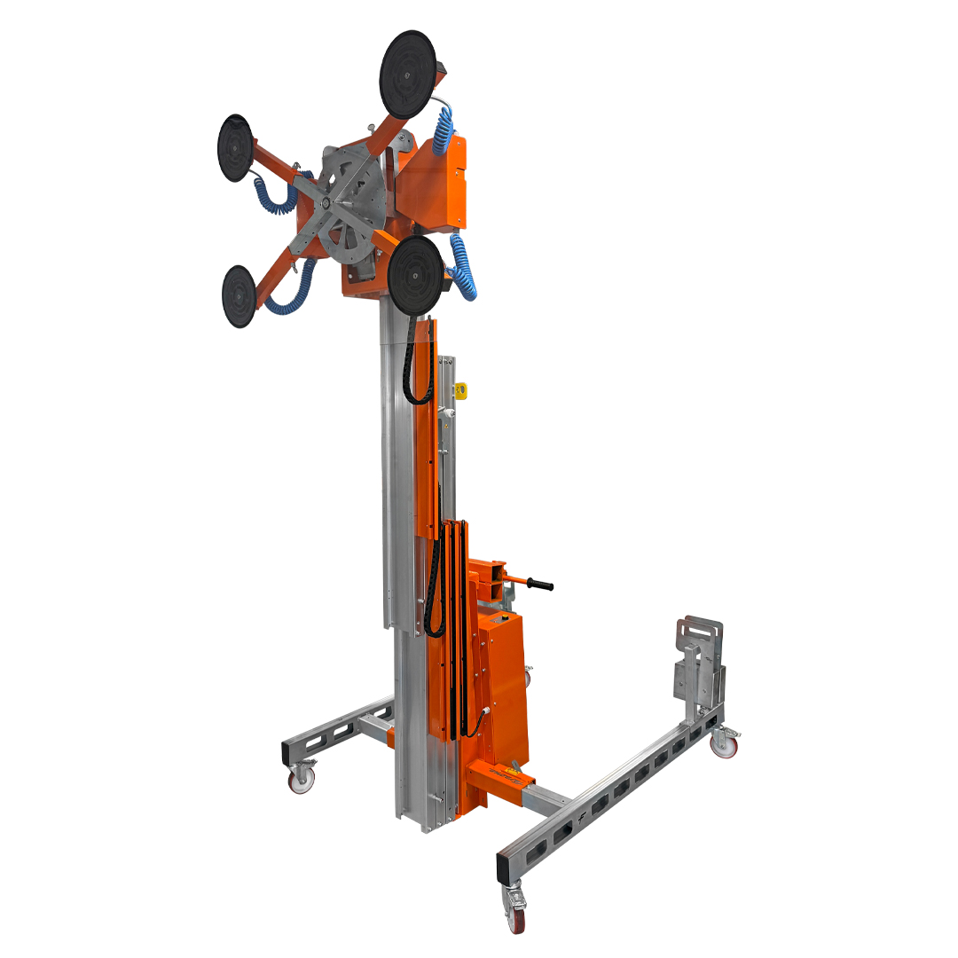 Profesjonalny podnośnik do transportu, podnoszenia i montażu szkła, okien oraz elementów przeszklonych. Zapewnia maksymalne bezpieczeństwo i wygodę pracy zarówno w środowisku przemysłowym, jak i rzemieślniczym.