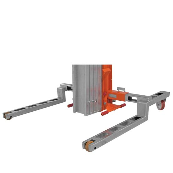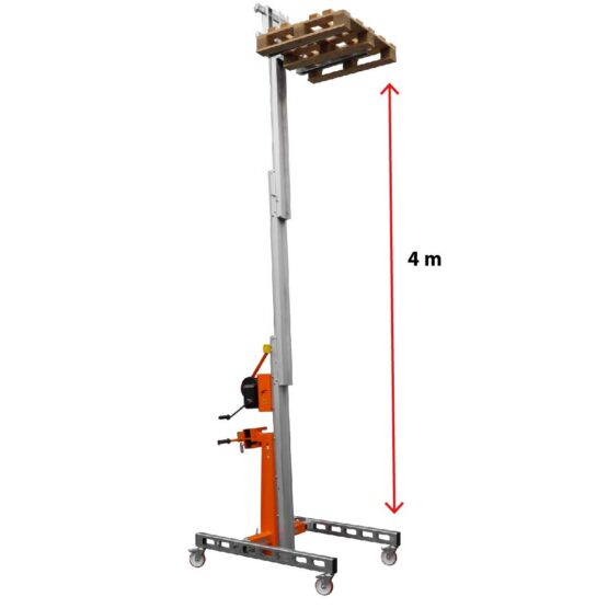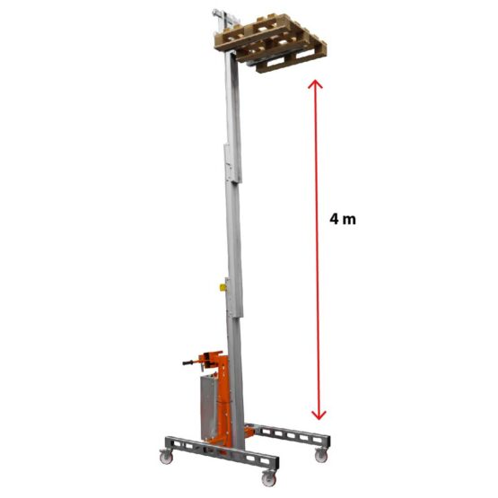 Podnośnik materiałów wykonany z aluminium. Łatwo się go przemieszcza dzięki skrętnym kołom z hamulcem na wcisk. Regulowana wysokość podstawy. Budowa ergonomiczna pozwala jednej osobie na podnoszenie i przenoszenie dużych ładunków. Podnośnik rozkłada się i jest łatwy w transporcie. Specjalnie niska podstawa do łatwego dostępu, palety. Wersja manualna oraz elektryczna (Wyposażony w elektrohydrauliczny układ podnoszenia, akumulatorami 24V).