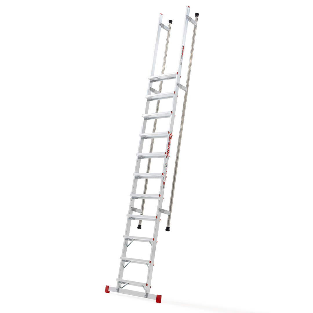 Drabina przystawna z płaskimi stopniami i poręczami Faraone