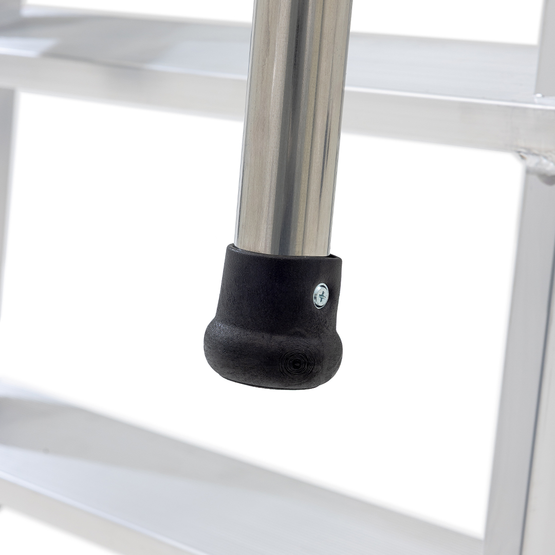 • Drabina posiada odpowiednio trwały stabilizator ze stopkami z antypoślizgowego tworzywa zapewniający stabilne oparcie drabiny w czasie pracy.