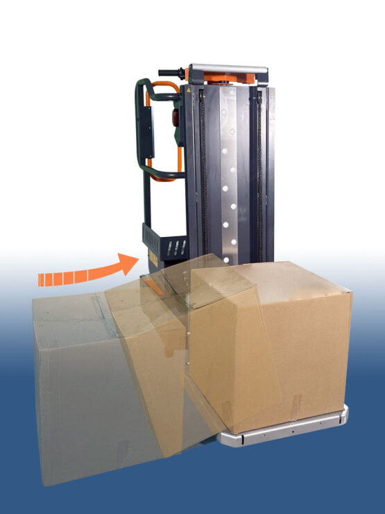Specjalne narzędzie umożliwia załadunek towaru do 100 kg bezpośrednio z podłoża, posiada elektryczną regulację, co pozwala na przybliżenie lub oddalenie towarów, oraz utrzymanie ergonomicznej pozycji podczas wszystkich operacji. Półka kompletacyjna wyposażona jest w wygodne rolki przesuwne ułatwiające operacje magazynowania.