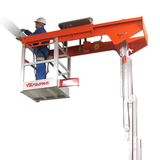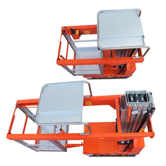 Kompaktowy podest ruchomy wysuwanym koszem, który umożliwi bezpieczne osiągnięcie wysokości roboczej 6,70 m.