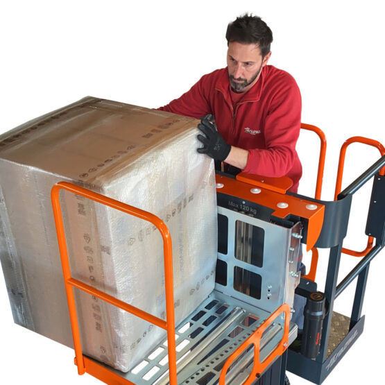 Specjalne narzędzie zostało zaprojektowane do załadunku towaru do 100 kg bezpośrednio z podłoża, posiada elektryczną regulację, co pozwala na przybliżenie lub oddalenie towarów, oraz utrzymanie ergonomicznej pozycji podczas wszystkich operacji. Półka kompletacyjna wyposażona jest w wygodne rolki przesuwne ułatwiające operacje magazynowania.