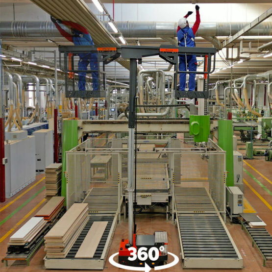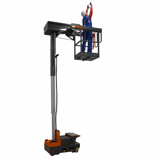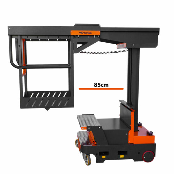 Samojezdna platforma z elektrycznym podnoszeniem i ręcznie wysuwanym koszem 85 cm do prac konserwacyjnych i naprawczych.