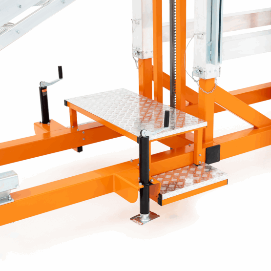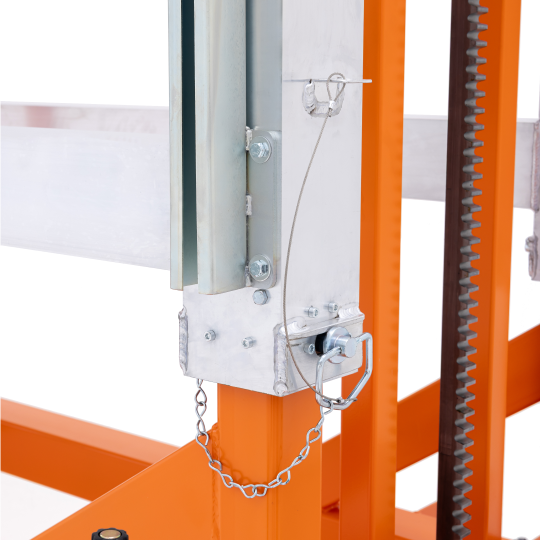 Dodatkowe podpory stabilizujące z systemem korbowym zapewniają maksymalną sztywność konstrukcji nawet przy najwyższej wysokości roboczej.
