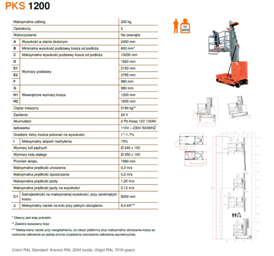 Podnośnik do pracy zewnętrznej dla 2 operatorów, max obciążenie 200 kg.