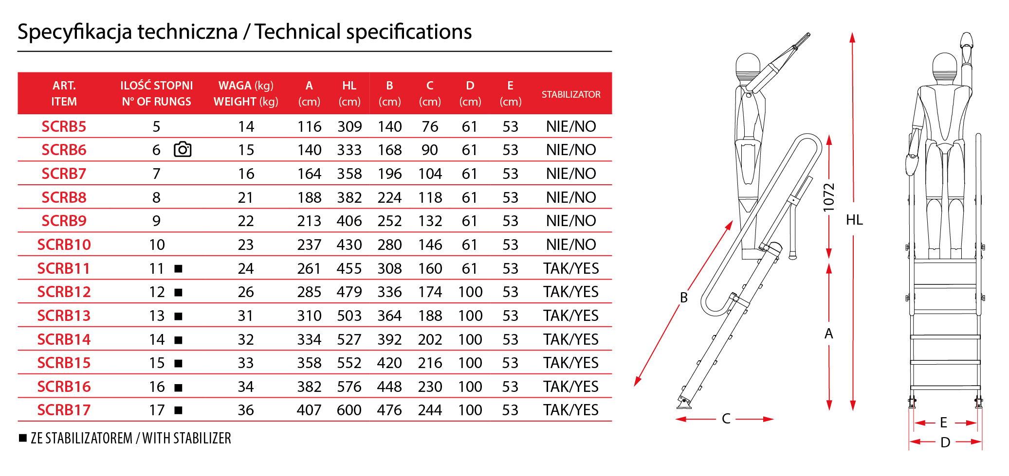 Drabina SCRB to drabina składana ze stopniami 15 cm, która zapewnia stabilność i bezpieczeństwo podczas każdego użytkowania.