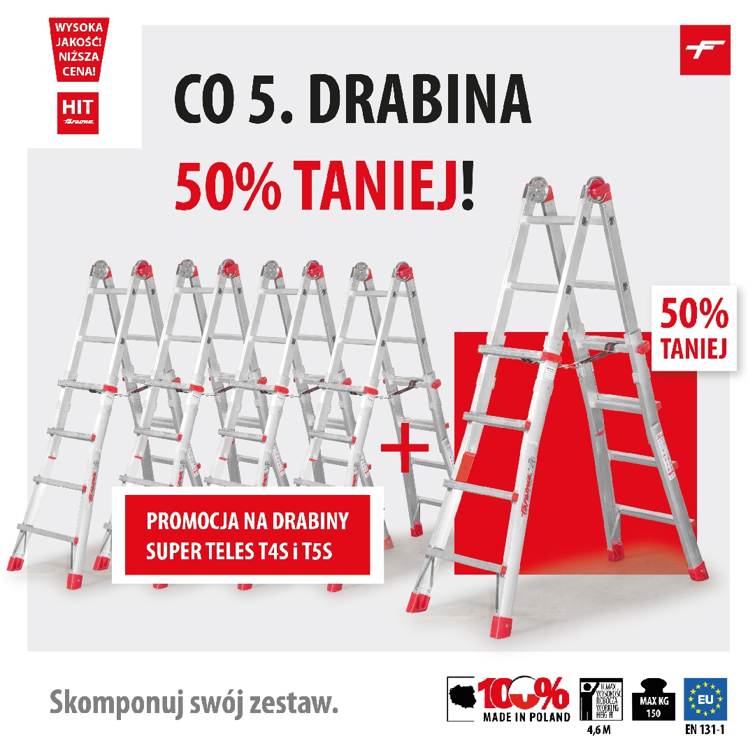 - Promocja obowiązuje na zakup drabin Super Teles T4S oraz T5S.